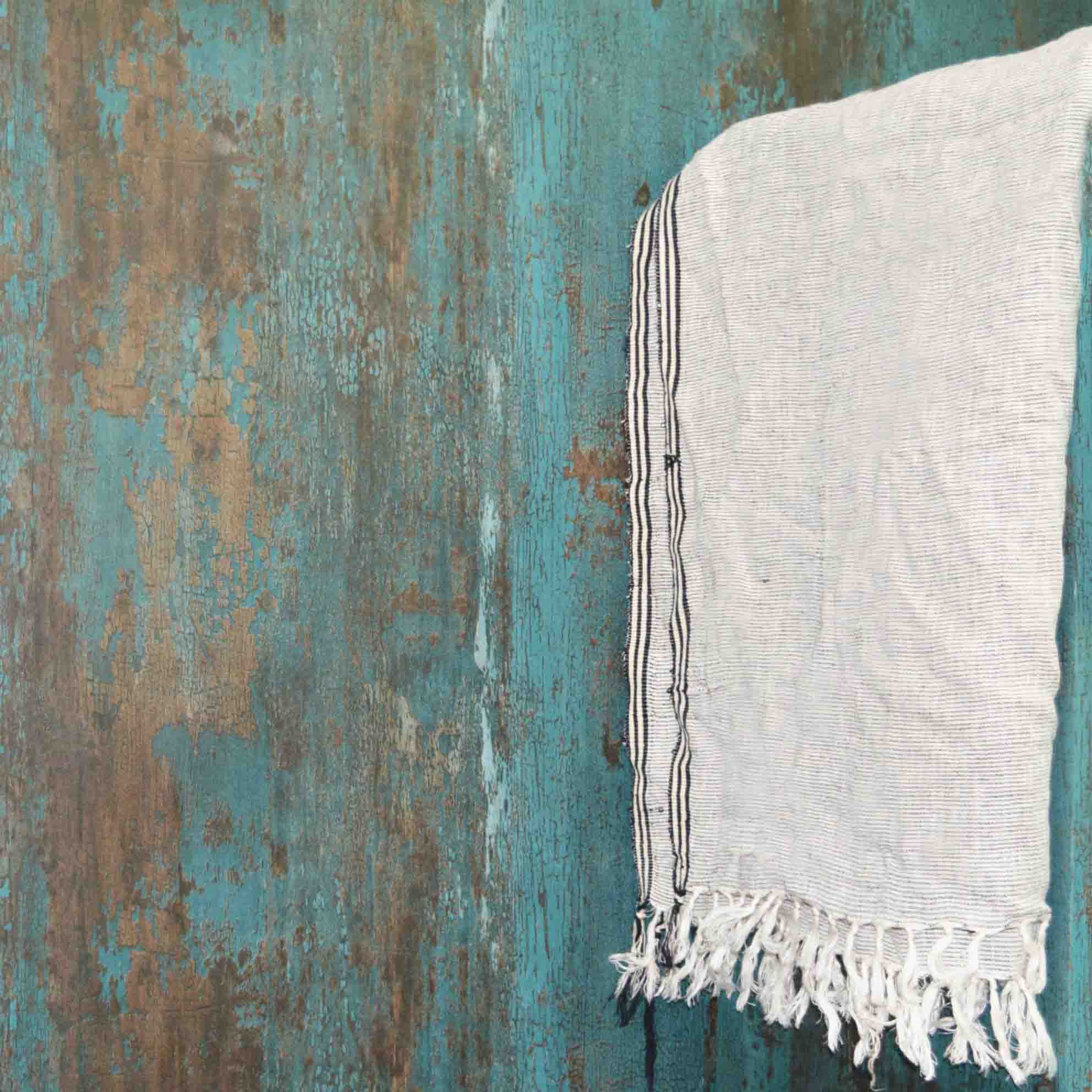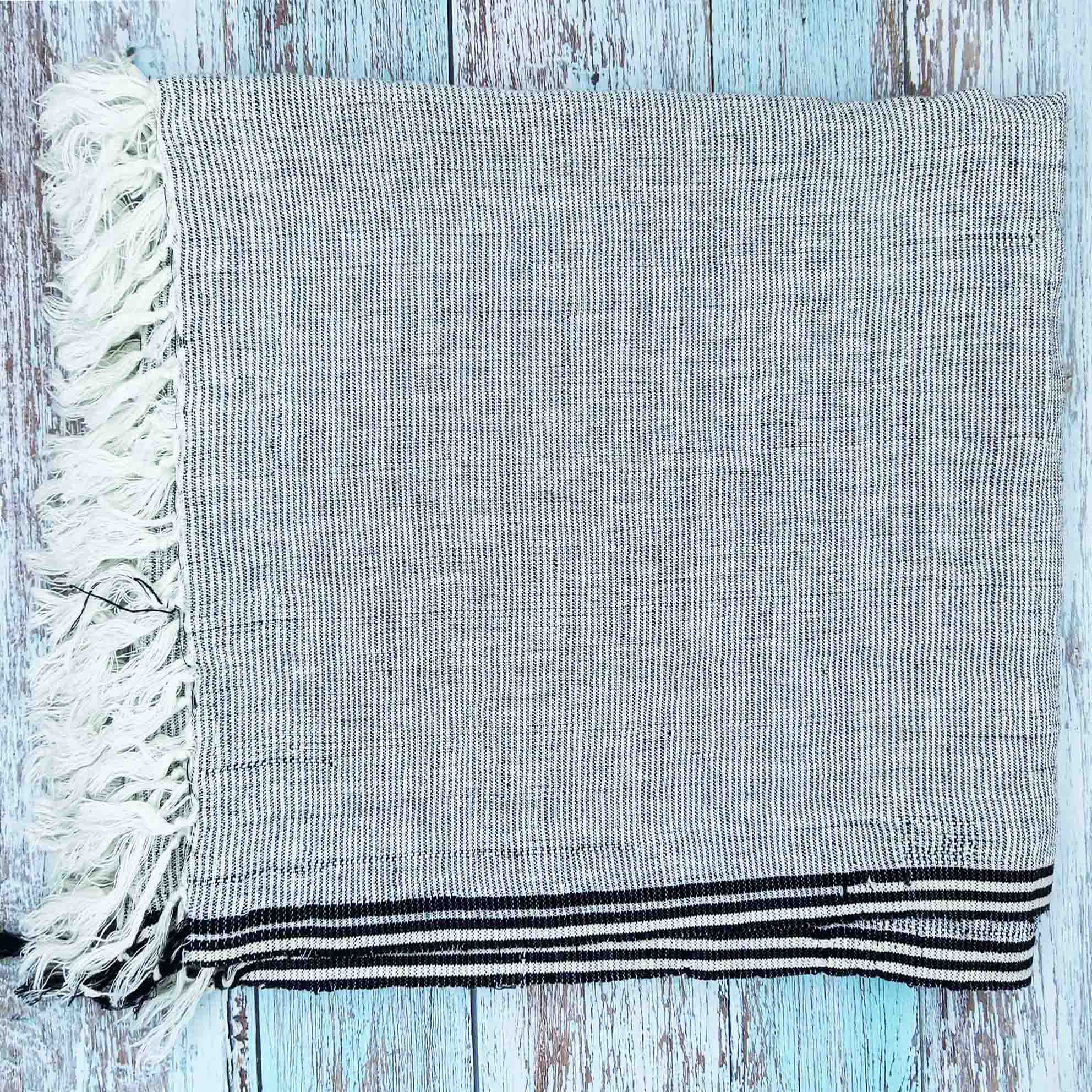 DESCRIPTION- WOVEN LINEN FABRIC THROW WITH DEBSE FRINGES