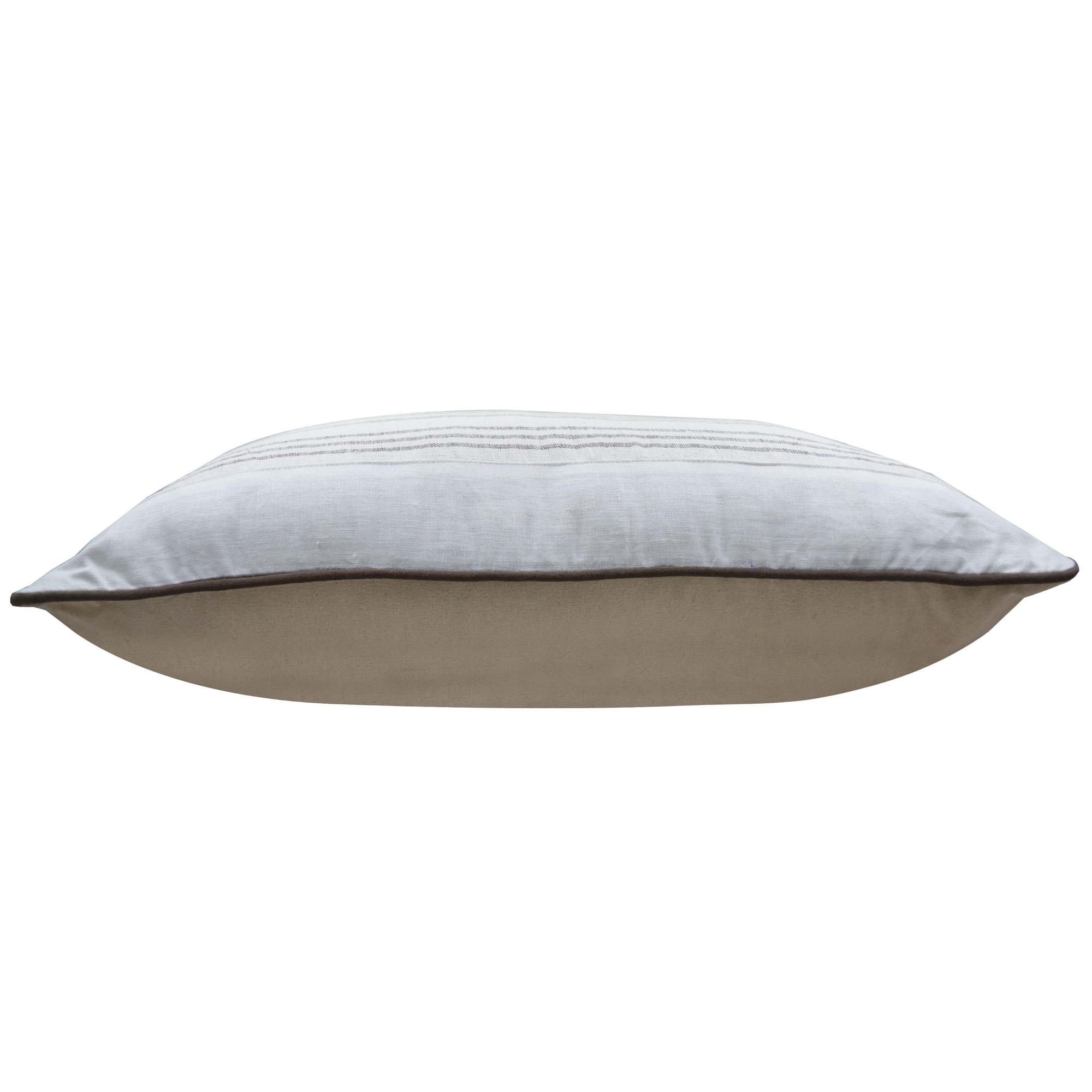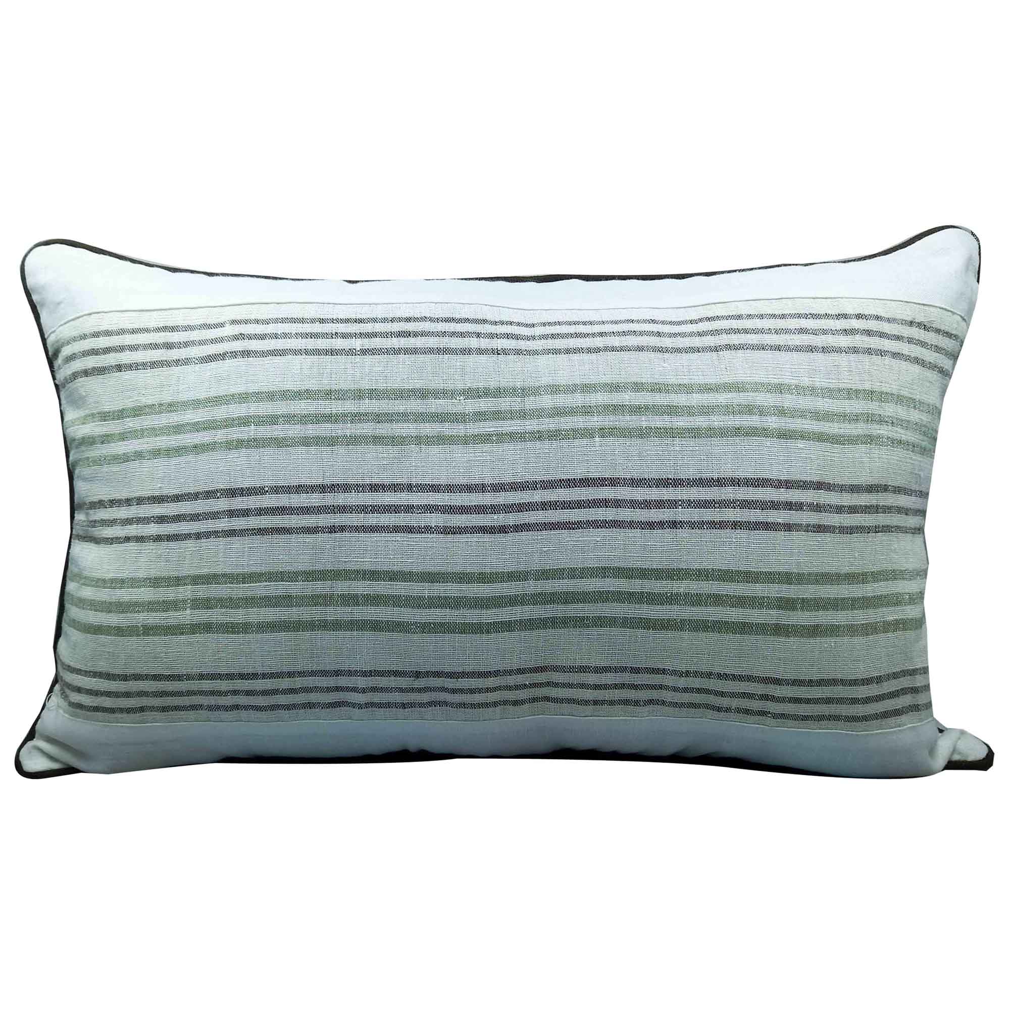 ITEM NO.-  CU/AT113 DESCRIPTION-  WEAVING STRIPE LINEN FABRIC CUSHION COVER WITH COTRAST PIPING SIZE- 30X60 cm FABRIC- LINEN