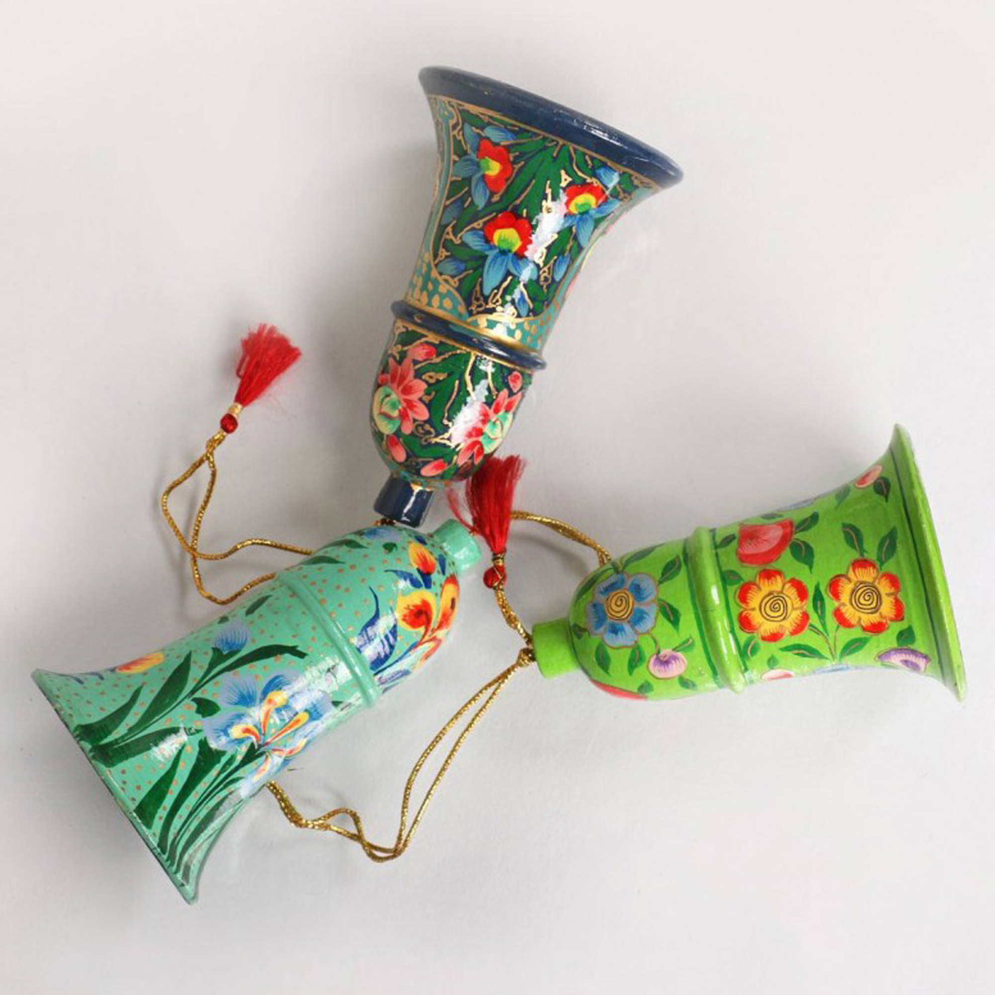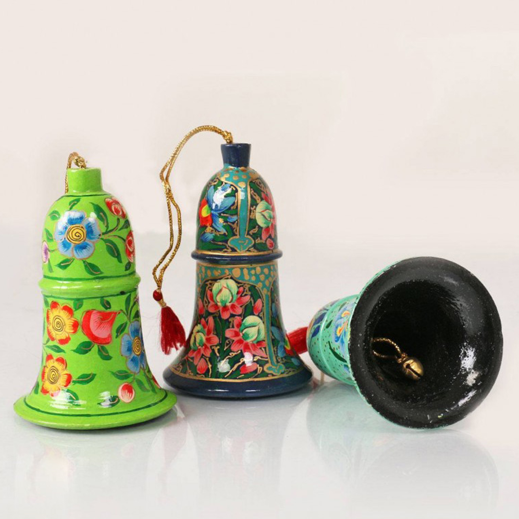 DESCRIPTION- HAND PAINTED CHRISTMAS BELLS WITH TASSELS