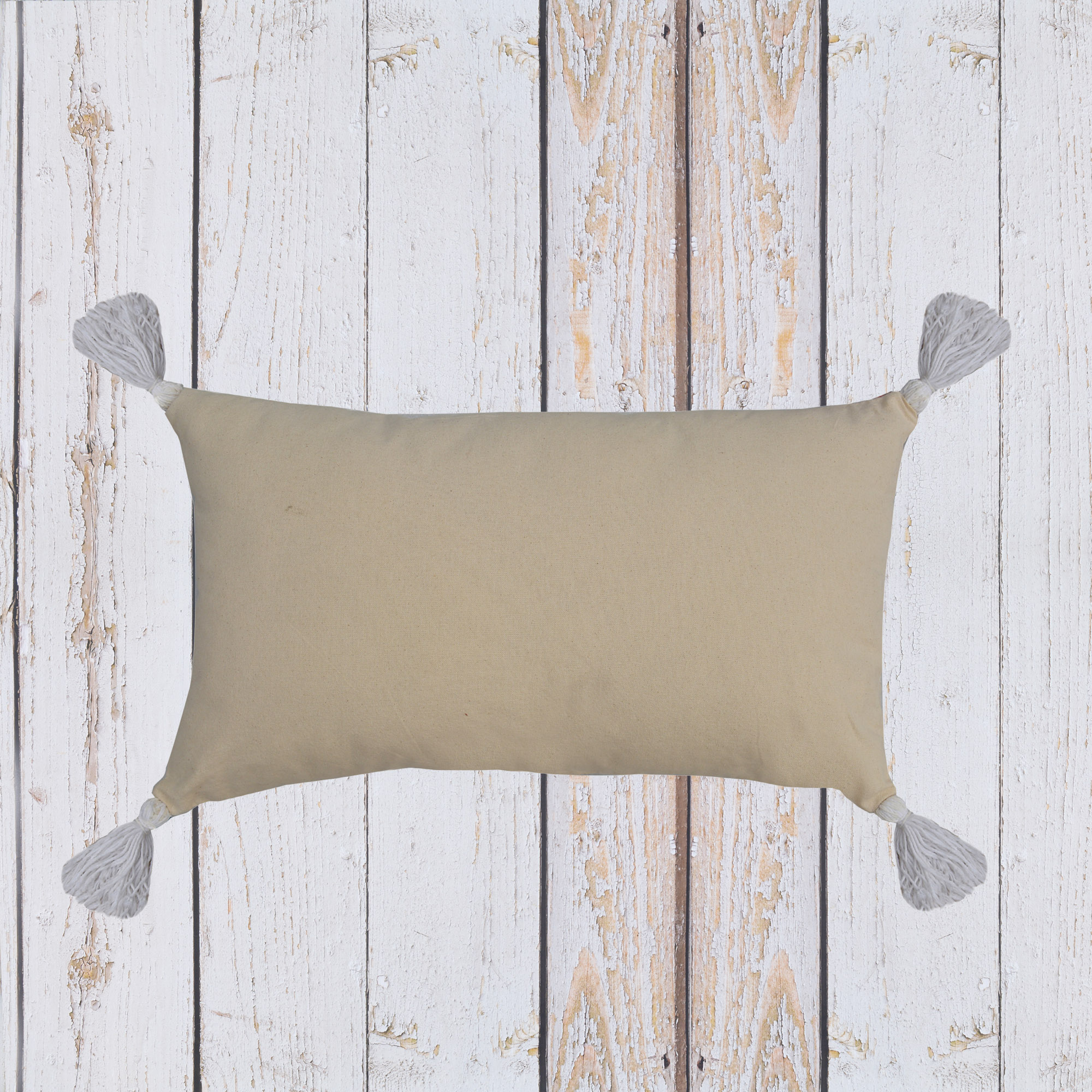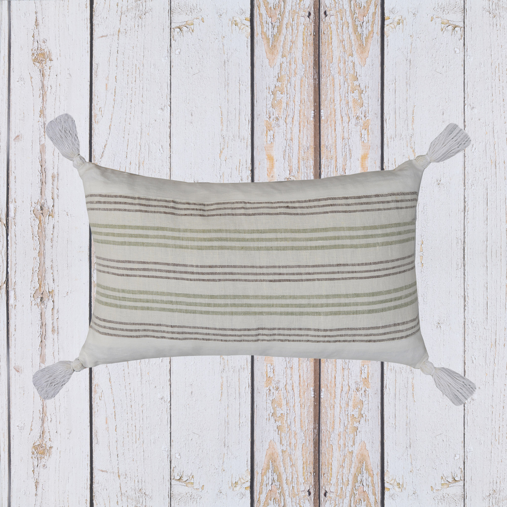 DESCRIPTION- WEAVING STRIPE LINEN FABRIC CUSHION COVER WITH TASSELS
